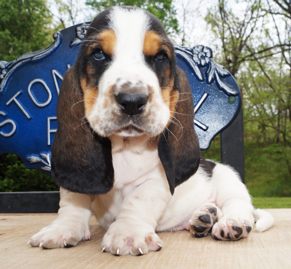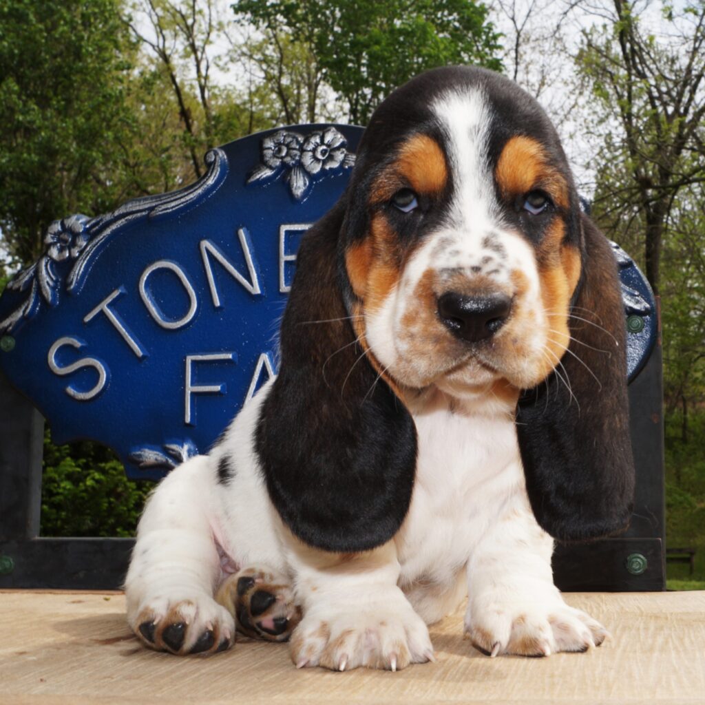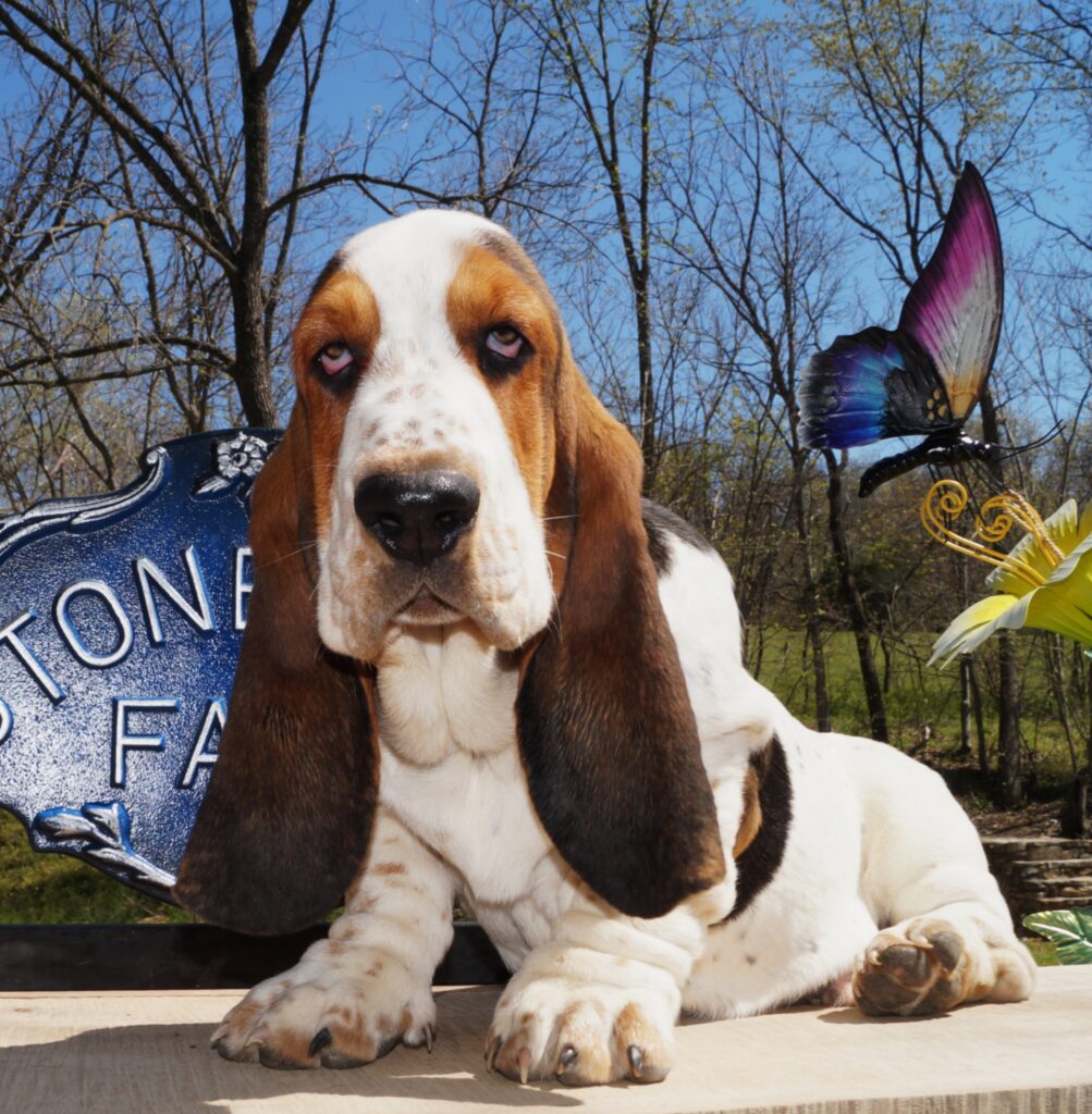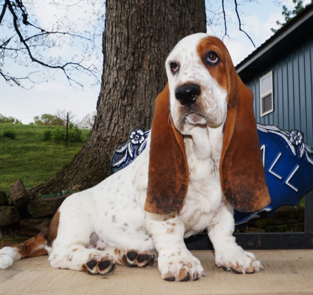 Stonewall Farm in Ava, MO proudly breeds AKC basset hound puppies that make happy and healthy additions to your family. Our goal is to connect our customers with loving and healthy pets that will bring them endless joy and companionship. At Stonewall Farms Bassets, we take great pride in our commitment to responsible breeding. Our dogs are carefully selected to ensure that they have the desired physical and personality traits of a basset hound. We follow the best breeding practices to ensure that our puppies are healthy, happy, and socialized. All of our parents are DNA tested for the following genetic health issues; Thrombopathia, Primary Open Angle Glaucoma, X-Linked and Lafora. All parent mating’s are made with this in mind and no puppies should result that are affected by any of these issues.